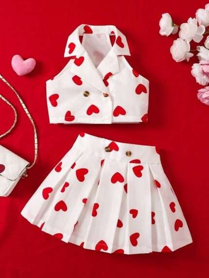 Love In The Air – Girls Heart Print Skirt Set