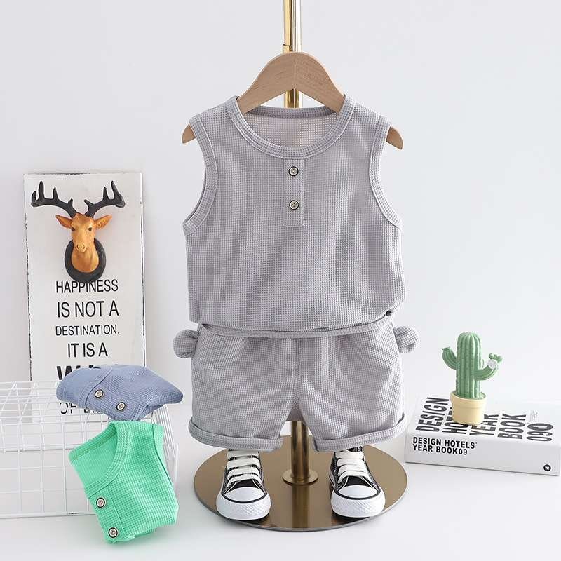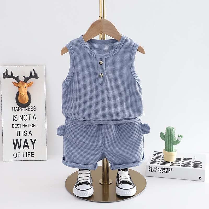 Home Little Boys Western Style Little Boy Clothes Children Baby Summer Clothing Sleeveless Two-piece Suit